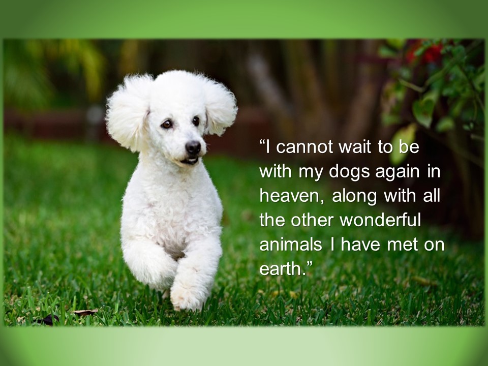 I cannot wait to be with my dogs again in heaven, along with all the other wonderful animals I have met on earth.